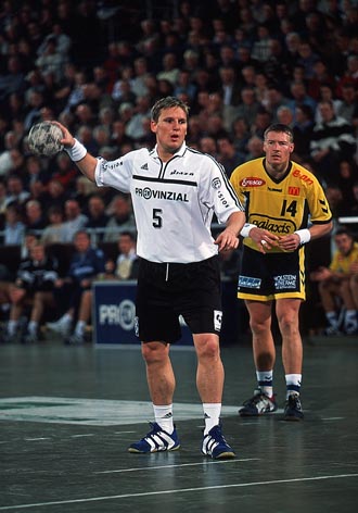 | Staffan Olsson. | Staffan gegen die Schwartauer Abwehr. | Staffan setzt sich durch. | Eine kleine Ruhepause für den "alten Schweden"... | |||