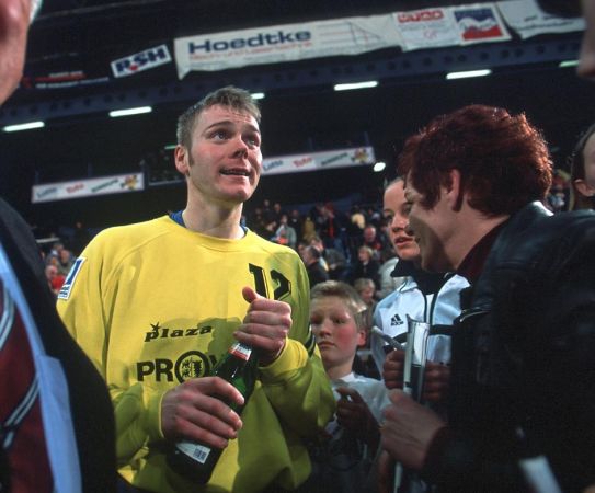 | Der Rückhalt im Spiel gegen Cetinje: Axel Geerken. | Axel und die Fans. | Jonas Ernelind trifft! | Nikolaj Jacobsen - gegen Cetinje neunmal erfolgreich. | |||
