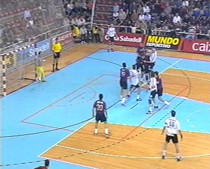 | EHF-Pokal-Finale 2002, Rückspiel: Die Barca-Fans vor dem Anpfiff. | EHF-Pokal-Finale 2002, Rückspiel: Kurz vor dem Anpfiff. | EHF-Pokal-Finale 2002, Rückspiel: Guijosa trifft zum 2:0. | EHF-Pokal-Finale 2002, Rückspiel: Entrerrios trifft zum 10:2. | |||