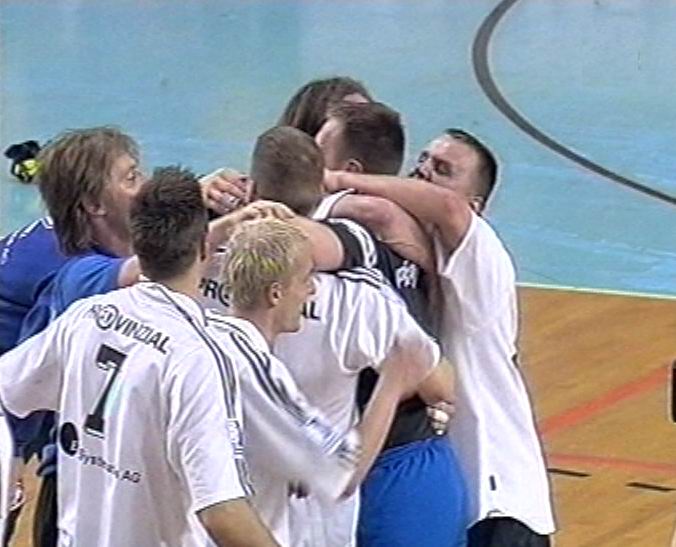 | EHF-Pokal-Finale 2002, Rückspiel: Jubel! | EHF-Pokal-Finale 2002, Rückspiel: Jubel! | EHF-Pokal-Finale 2002, Rückspiel: Jubel! | EHF-Pokal-Finale 2002, Rückspiel: Laszlo Nagy am Boden zerstört. | |||
