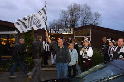 | EHF-Pokal-Finale 2002, Rückspiel: "Die haben mit einem gewaltigen Tempo angefangen..." | EHF-Pokal-Finale 2002, Rückspiel: Jubel bei den Kieler Fans! | EHF-Pokal-Finale 2002, Rückspiel: Zufrieden. | EHF-Pokal-Finale 2002, Rückspiel: Feier im Restaurant... | |||