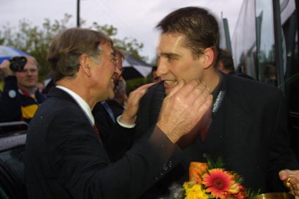 | EHF-Pokal-Finale 2002, Rückspiel: 200 Fans empfingen den THW am Flughafen. | EHF-Pokal-Finale 2002, Rückspiel: Der Käptn mit dem Pott. | EHF-Pokal-Finale 2002, Rückspiel: "Nur noch sechs Spiele. Ich bin ein bißchen traurig" | EHF-Pokal-Finale 2002, Rückspiel: "Jetzt kommt nochmal alles hoch..." | |||