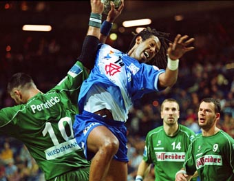 | Finale: Magdeburg - San Antonio: Richardson setzt sich durch. | Finale: Magdeburg - San Antonio: Richardson gegen Perunicic. | Finale: Magdeburg - San Antonio: Stefan Kretzschmar. | Finale: Magdeburg - San Antonio: Nenad Perunicic. | |||