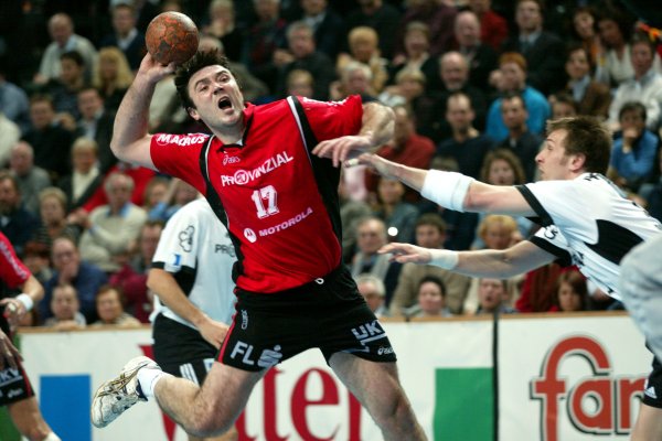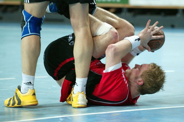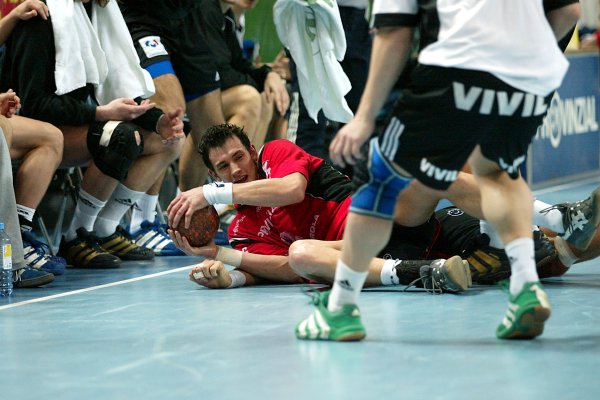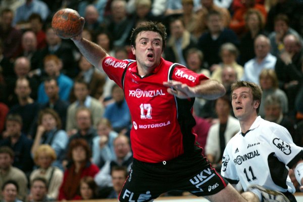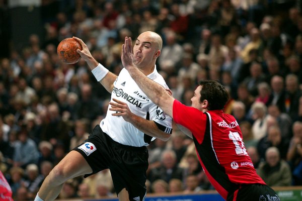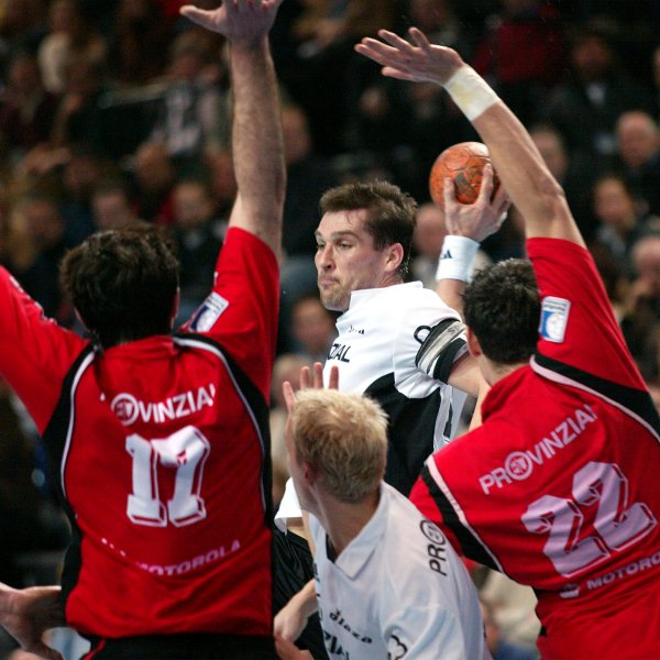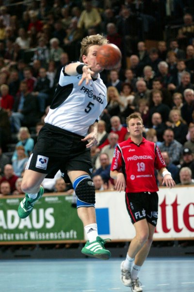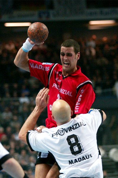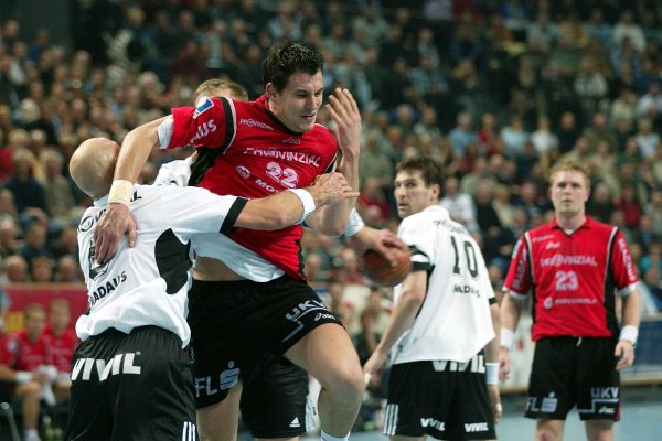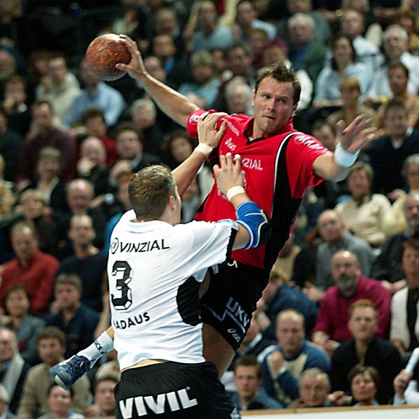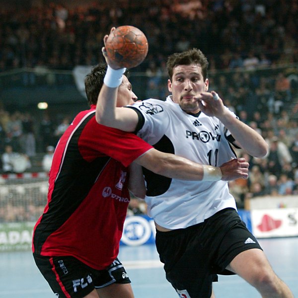 | Lozano gegen Klimovets. | Stefan Lövgren. | Andrej Klimovets. | Stefan Lövgren vor der Flensburger Abwehr. | |||