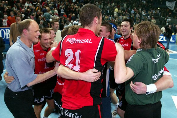 | Flensburger Jubel. | Enttäuscht: Nikolaj Jacobsen. | Jubelnd: Jan Fegter. | Sören Stryger. | |||