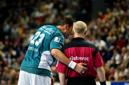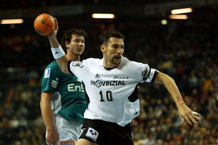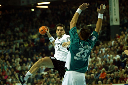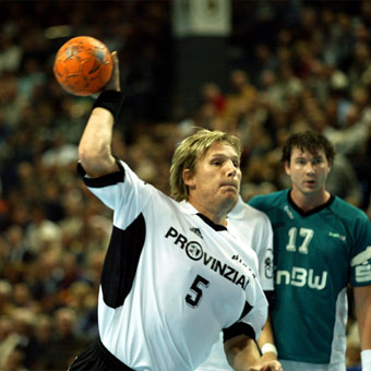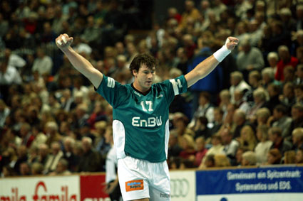 | Stefan Lövgren. | Johan Pettersson. | Hajo Wulff. | Nikolaj Jacobsen - gegen Göppingen sicherer Siebenmeterschütze. | |||