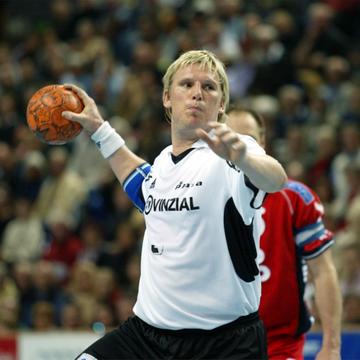 | Uwe Schwenker hatte wenig Grund für Ärger. | Lövgren stoppt Schumann. | Holger Glandorf. | Ian Marko Fog - Dominikovic im Hintergrund. | |||
