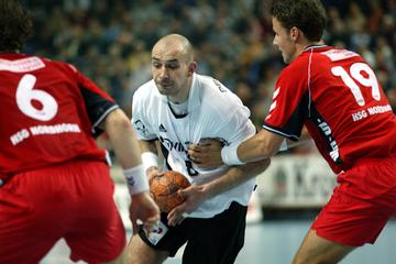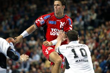 | Morten Bjerre gegen Torsten Jansen. | Nikolaj Jacobsen wieder mit großer Spielfreude. | Sebastian Preiß - im Hintergrund Ola Lindgren. | Davor Dominikovic gegen Jansen und Schumann. | |||