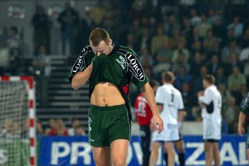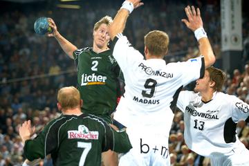 | Nebojsa Golic war mit 11/1 Toren bester Wetzlarer Werfer. | Petersen und Ahlm spielten erneut einen starken Mittelblock. | Petersen stoppt Viktorsson. | Viktorsson. | |||