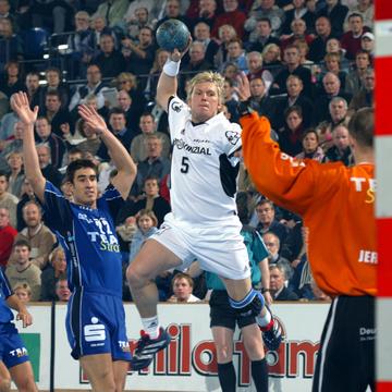 | Nikolaj Jacobsen war gegen Eisenach 6/2 Mal erfolgreich. | Adrian Wagner machte gegen Eisenach alle drei Tore per Kempa-Trick. | Demetrio Lozano. | Johan Pettersson war gegen Eisenach mit 11/1 Tore bester Werfer. | |||