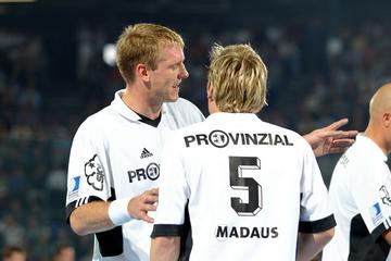 | Florian Wisotzki. | Sebastian Preiß. | Piotr Przybecki machte sich warm, konnte gegen Minden aber dennoch nicht spielen. | Uwe Schwenker überreicht der Kieler Sporthilfe einen Scheck über 6000 Euro. | |||