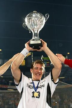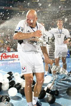 | Kapitän Stefan Lövgren mit dem Pokal. | Henning Fritz mit dem Pokal. | Jubel in der Ostseehalle. | Klaus-Dieter Petersen hat seinen Pott wieder! | |||