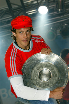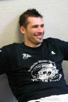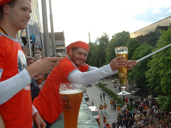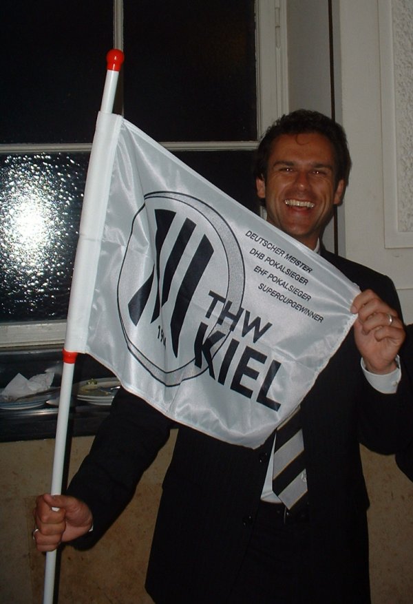 | THW-Kapitän Stefan Lövgren präsentiert den Fans die Meisterschale schon auf dem Flughafen Holtenau aus dem Cockpit-Dach heraus. | THW-Kapitän Stefan Lövgren präsentiert den Fans die Meisterschale schon auf dem Flughafen Holtenau aus dem Cockpit-Dach heraus. | Der THW Kiel ist Deutscher Handball-Meister 2005! Die Mannschaft feiert auf dem Rathaus-Balkon mit über 20000 Fans davor. | Der THW Kiel ist Deutscher Handball-Meister 2005! Die Mannschaft feiert auf dem Rathaus-Balkon mit über 20000 Fans davor. | |||