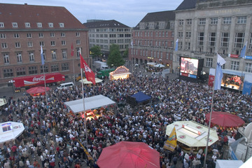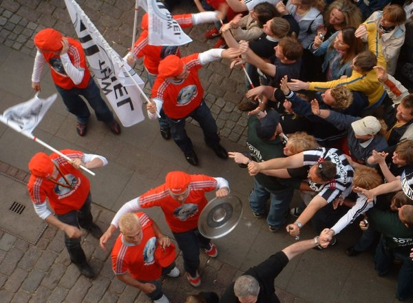 | Ein Gruß nach Flensburg. | Jubel auf dem Rathausplatz nach dem Sieg in Düsseldorf. | |||||