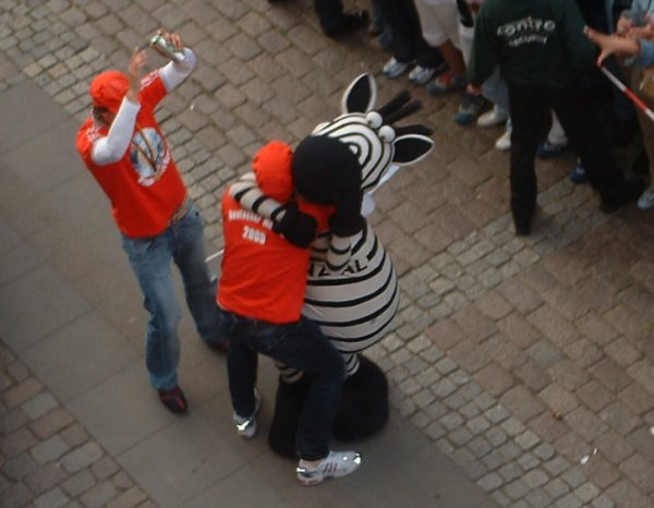 | Jubel um die Zebras! | Der Meister im Rathaus. | Prost, Zeitzi! | Prost! | |||