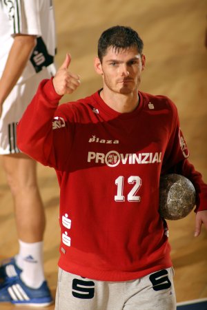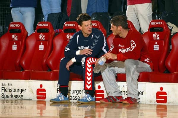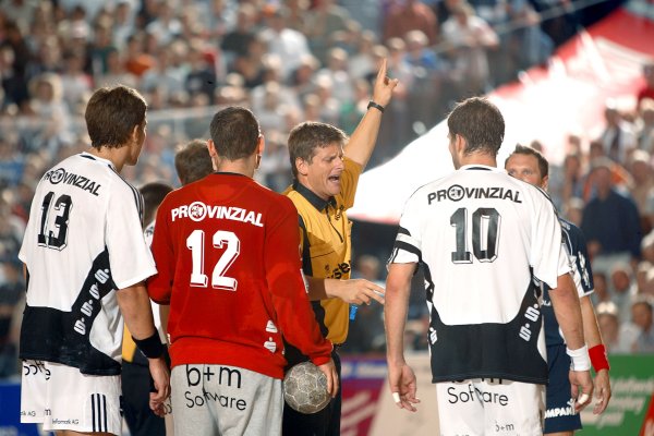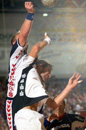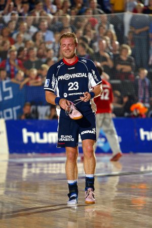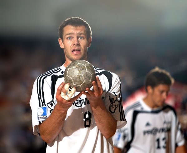 | Doppel-Zeitstrafe gegen Jensen und Lövgren. | Henning Fritz im Gespräch mit Jan Holpert. | Christian Zeitz. | Marcus Ahlm. | |||