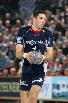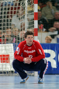 | Flensburgs Joachim Boldsen kommt am Kreis frei zum Torwurf. Links Stefan Lövgren, rechts Marcus Ahlm. | Torge Johannsen im Sprungwurf. | Blazenko Lackovic am Ball. | THW-Torwart Mattias Andersson reißt jubelnd beide Arme in die Höhe. | |||