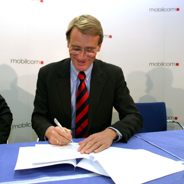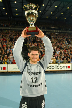 | Der Vorstandsvorsitzende der mobilcom AG, Dr. Thorsten Grenz, unterzeichnet den Sponsoren-Vertrag mit dem THW Kiel. | Der Vorstandsvorsitzende der mobilcom AG, Dr. Thorsten Grenz, unterzeichnet einen Sponsoren-Vertrag mit dem THW Kiel und präsentiert zusammen mit THW-Geschäftsführer Uwe Schwenker die neue Werbung auf dem THW-Trikot. | Der Vorstandsvorsitzende der mobilcom AG, Dr. Thorsten Grenz, im Trikot des THW Kiel. | THW-Torhüter Henning Fritz präsentiert die Trophäe zur Wahl zum "Welthandballer des Jahres 2004". | |||