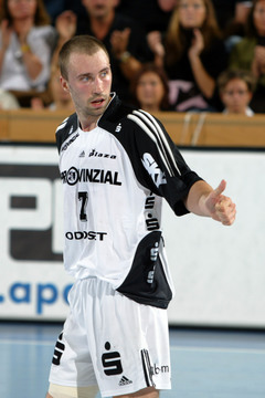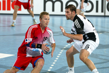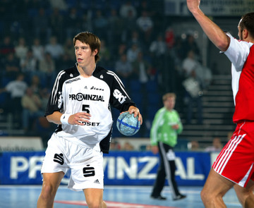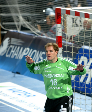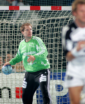 | Nikola Karabatic setzt sich durch. | Pelle Linders wird attackiert. | Pelle Linders wird bricht durch. | Henrik Lundström. | |||
