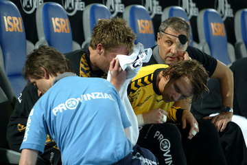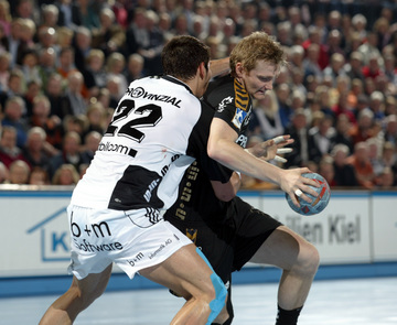 | Dominik Klein beim Gegenstoß. | Lars Christiansen. | Jubel auf der Kieler Bank. | Stryger wird behandelt. | |||