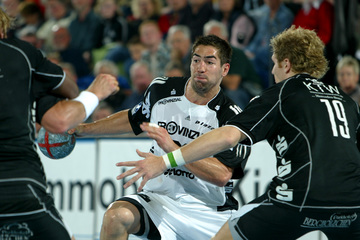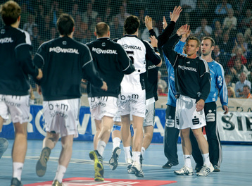 | Christian Zeitz führte den THW als Kapitän in die Halle. | Christian Zeitz führte den THW als Kapitän in die Halle. | Sven Lakenmacher und Nikola Karabatic. | Nikola Karabatic. | |||
