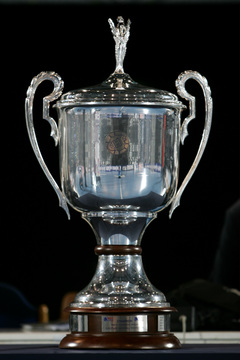 | Joachim Boldsen am Kreis. | Der Champions-League-Pokal. | Der Champions-League-Pokal. | Boldsen wird attckiert. | |||