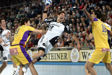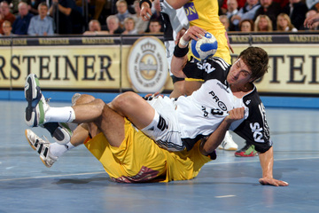 | Noka Serdarusic. | Nikola Karabatic. | Henrik Lundström wird attackiert. | Andrius Stelmokas. | |||