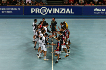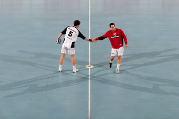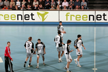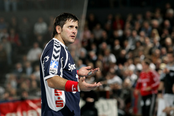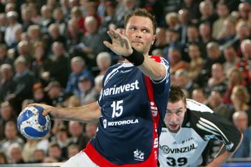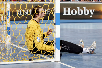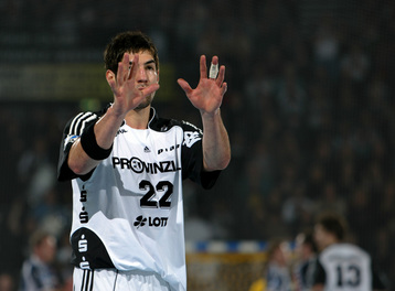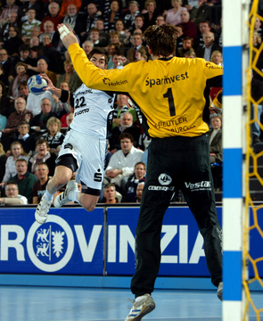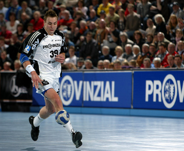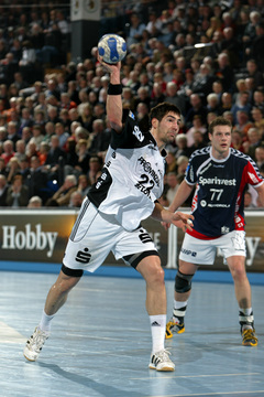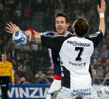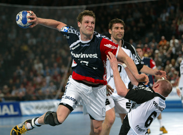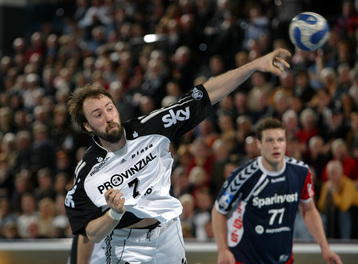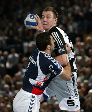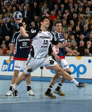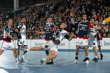 | Vor dem Anwurf. | Dominik Klein. | Filip Jicha. | Nikola Karabatic gegen Dan Beutler. | |||