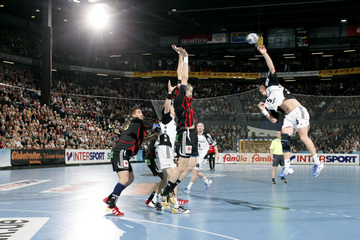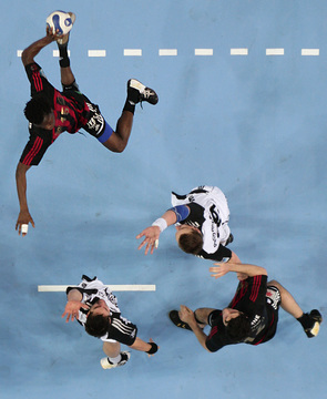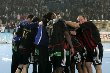 | Spielszene. | Luc Abalo ist vorbei. | Freude über den Sieg. | Enttäuschung. | |||