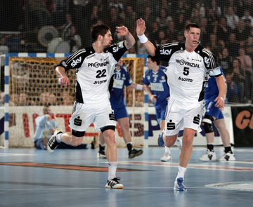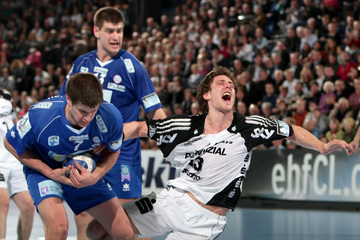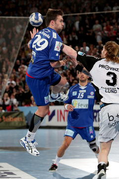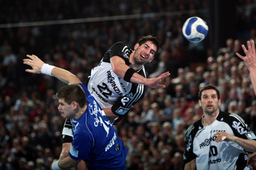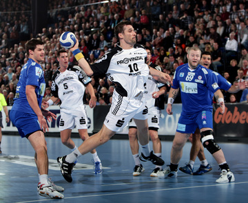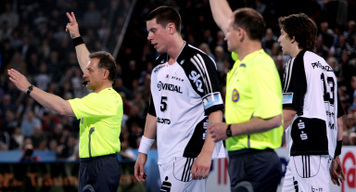 | Leons Trainer Jordi Ribera. | Marcus Ahlm wird von Tonci Valcic unfair gestoppt. | Nikola Karabatic wird attackiert. | Mirko Alilovic. | |||