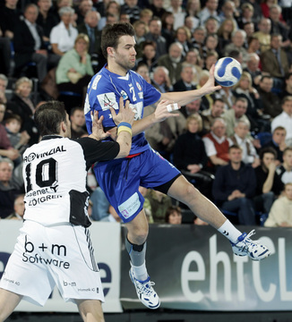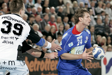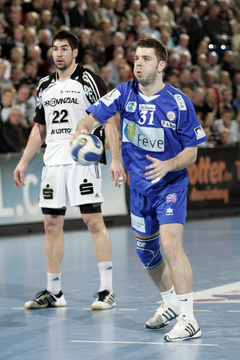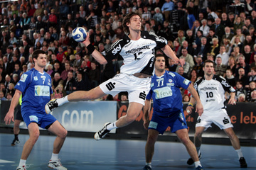 | Christian Zeitz. | Martin Stranovsky. | Karabatic attackiert Sarmiento. | Treffer! | |||