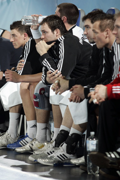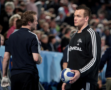 | Zwei Minuten! | Stefan Lövgren springt in den Kreis. | THW-Fans. | Sigfus Sigurdsson. | |||