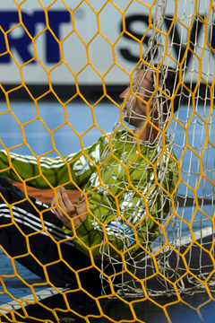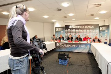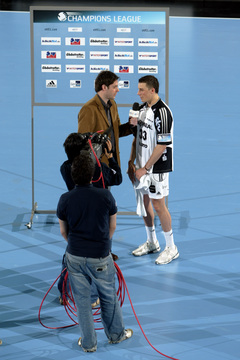 | Vor dem Anwurf. | Thierry Omeyer im Eurosport-Interview. | Spielszene. | Pressekonferenz. | |||