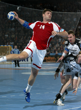 | Omeyer und Serdarusic. | Moskaus Trainer Vladimir Maximov. | Dominik Klein wird attackiert. | Nikola Karabatic greift an. | |||