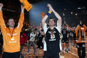 | Jubel über den Titel. | Guck mal, da stehen wir! | Der DHB-Pokal. | Der DHB-Pokal. | |||