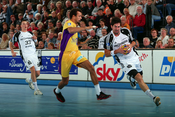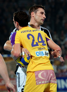 | Petr Stochl. | Nikola Karabatic gegen Petr Stochl. | Kim Andersson. | Füchse-Trainer Jens Uwe Lommel. | |||