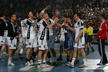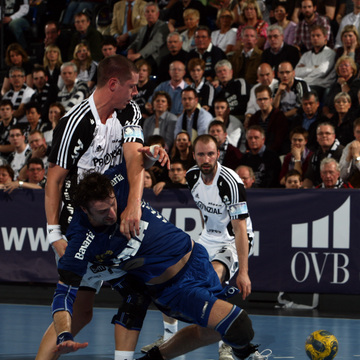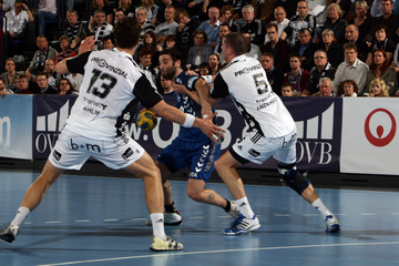 | Thierry Omeyer. | Ivano Balic wird gestoppt. | Filip Jicha. | Dominik Klein. | |||