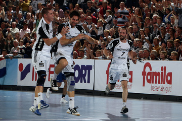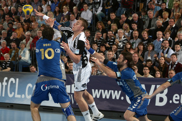 | Bruno Martini. | Alfred Gislason. | Igor Vori wird gestoppt. | Thierry Omeyer. | |||
