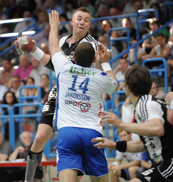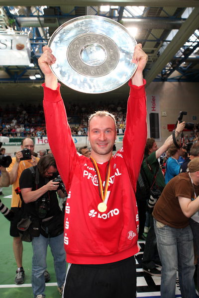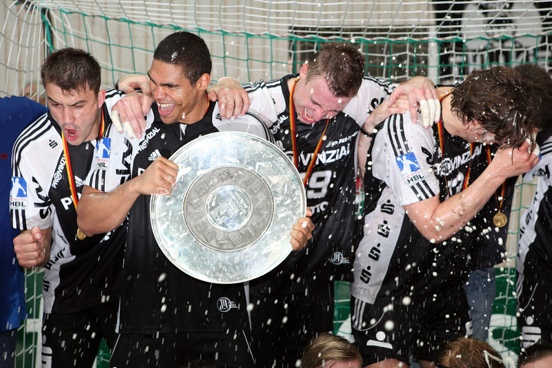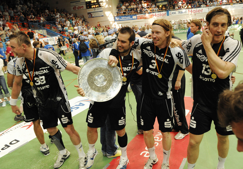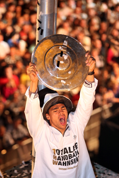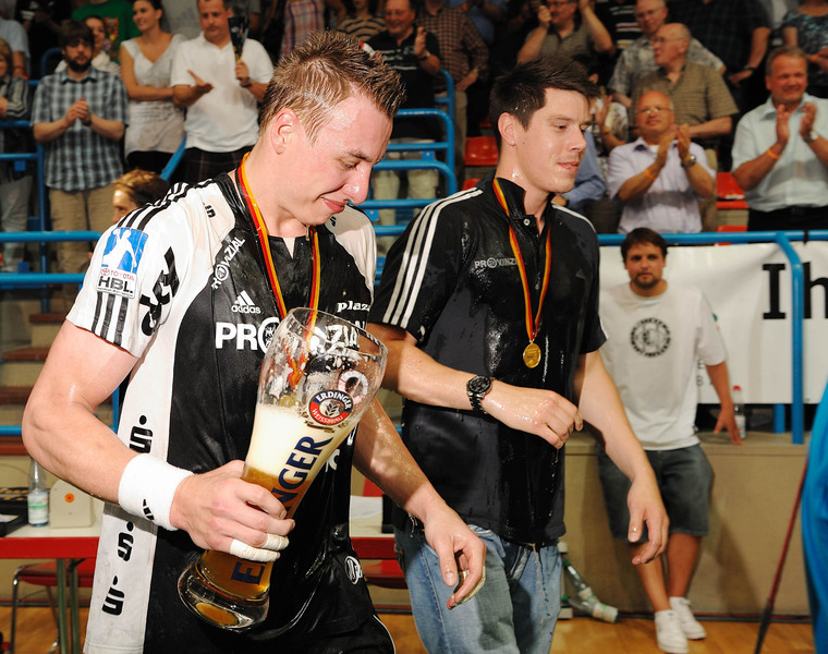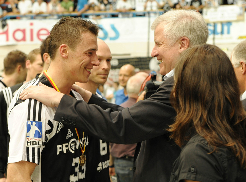 | Deutscher Meister 2010! | Bayerns Ministerpräsident Horst Seehofer ehrt den Deutscher Meister Alfred Gislason. | Deutscher Meister 2010! | Spielszene. | |||