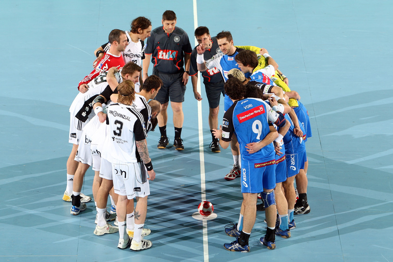 | Blazenko Lackovic. | Auszeit. | Vor dem Anpfiff. | Marcus Ahlm gegen Guillaume Gille. | |||