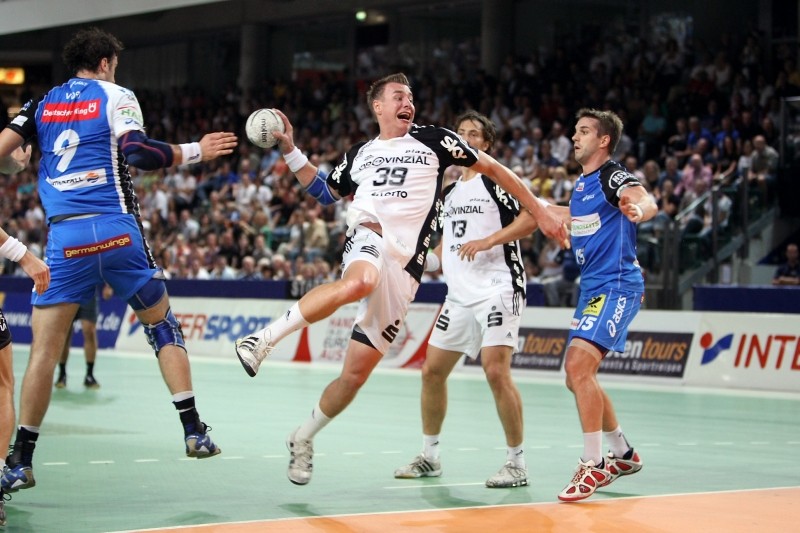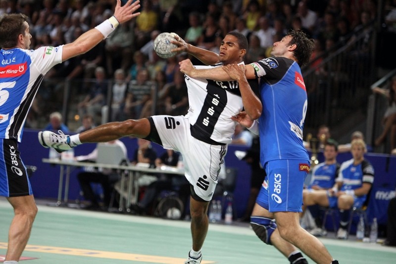 | Domagoj Duvnjak. | Daniel Narcisse wird von Igor Vori attackiert. | Super-Cup-Sieger 2009: Der HSV Hamburg. | Daniel Narcisse. | |||