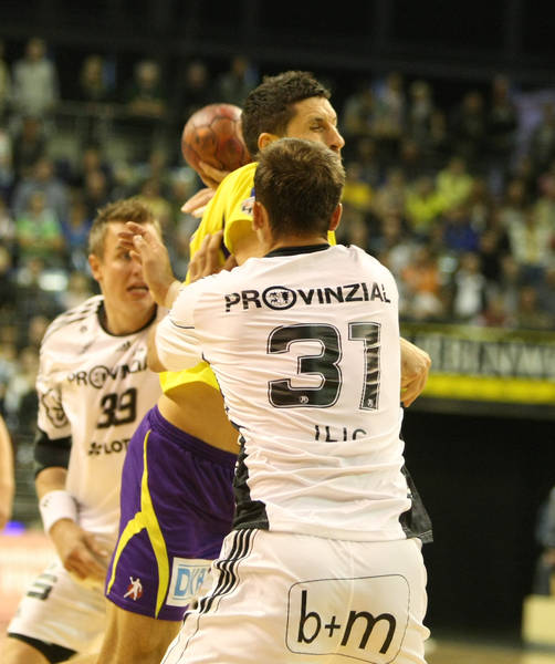 | Momir Ilic gegen Alexander Petersson. | Kampf um den Ball. | Spielszene. | Torsten Laen. | |||