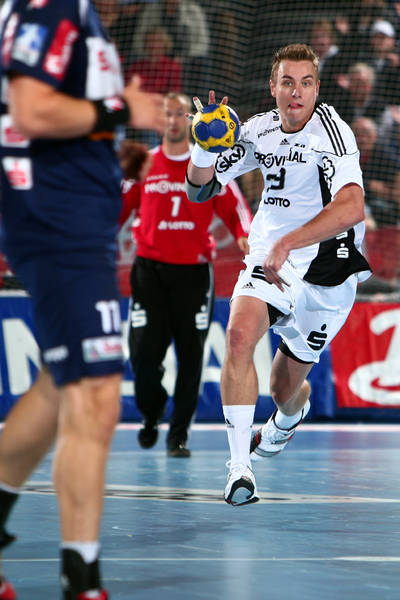 | Milutin Dragicevic gegen Holger Glandorf. | Spielszene. | Filip Jicha. | Aron Palmarsson. | |||