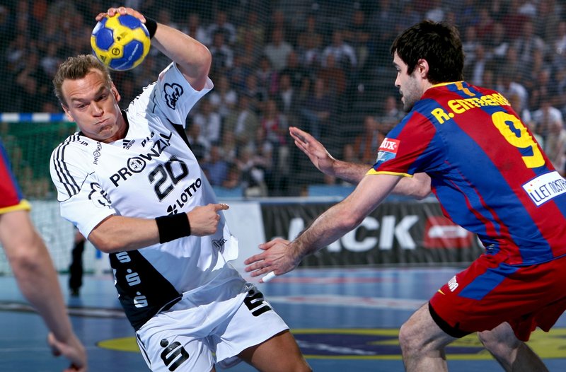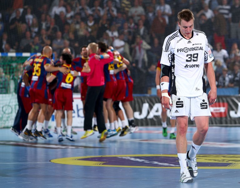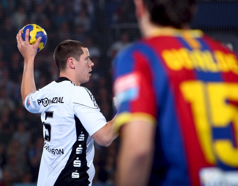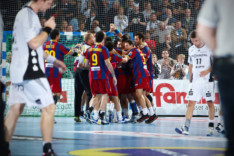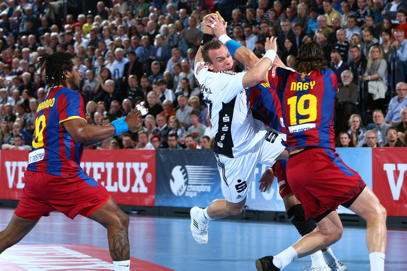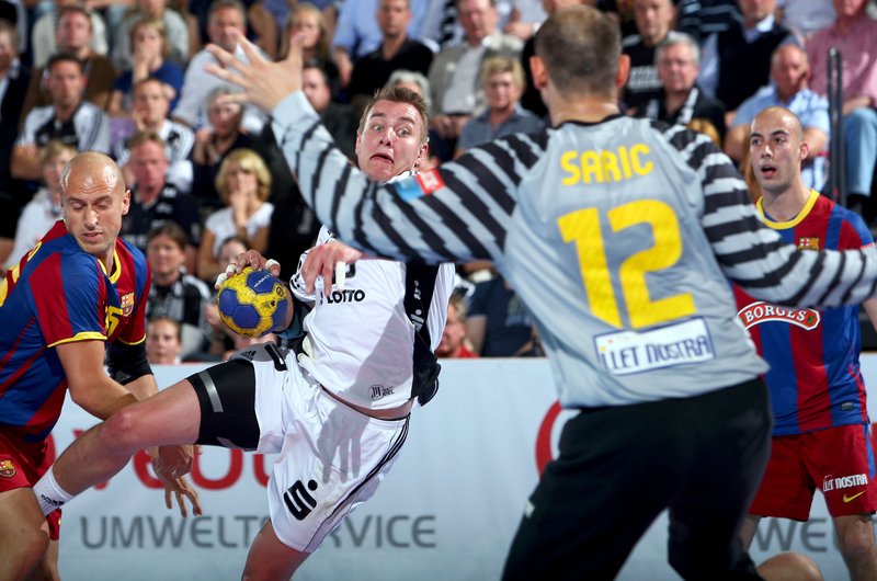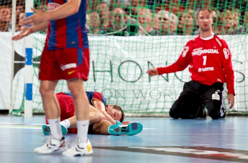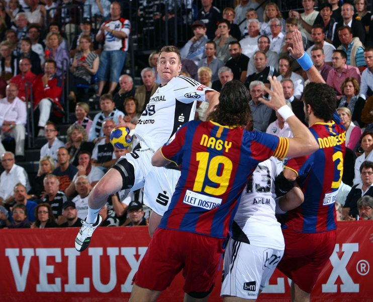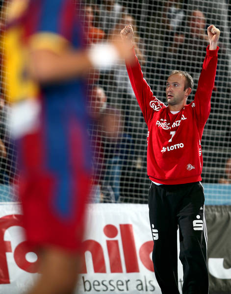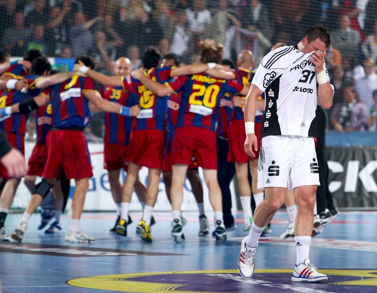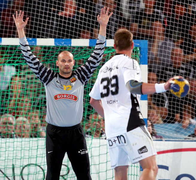 | Thierry Omeyer. | Alfred Gislason. | Freude bei Barcelona nach dem Punktgewinn. | Rot für Nagy. | |||