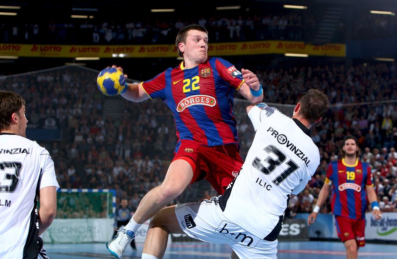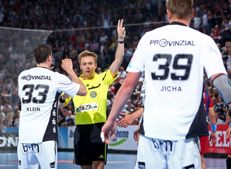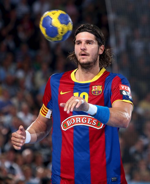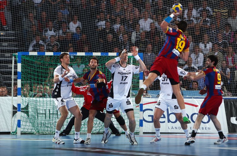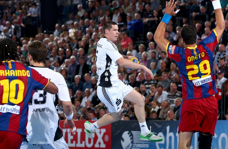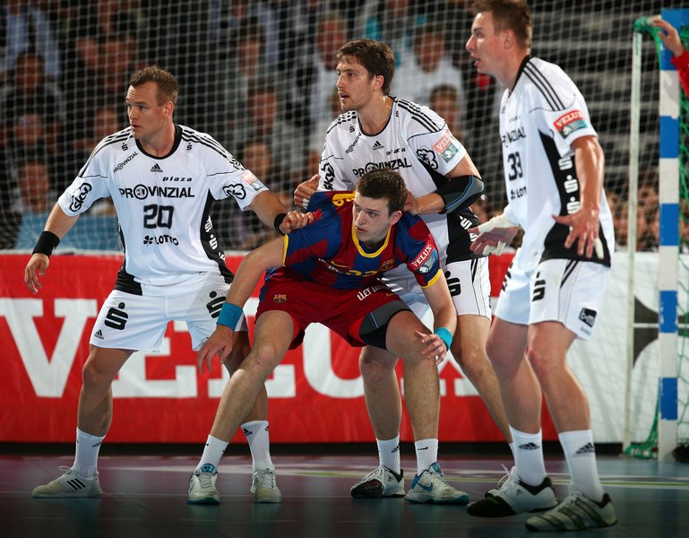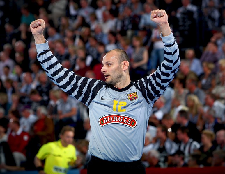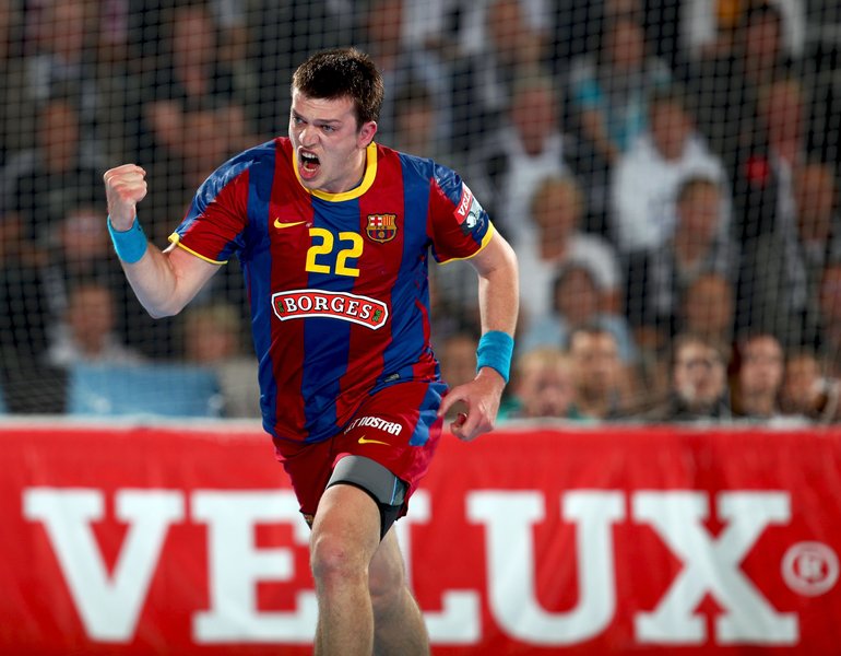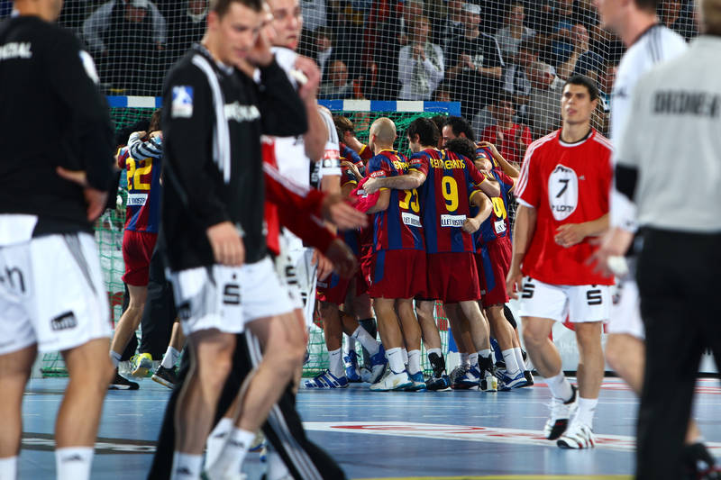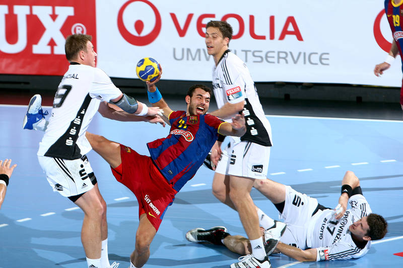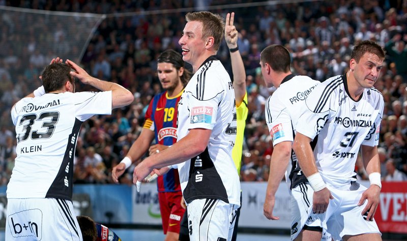 | Thierry Omeyer. | Alfred Gislason. | Freude bei Barcelona nach dem Punktgewinn. | Rot für Nagy. | |||