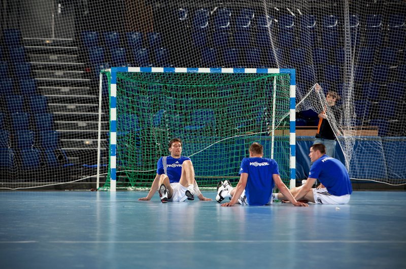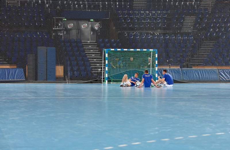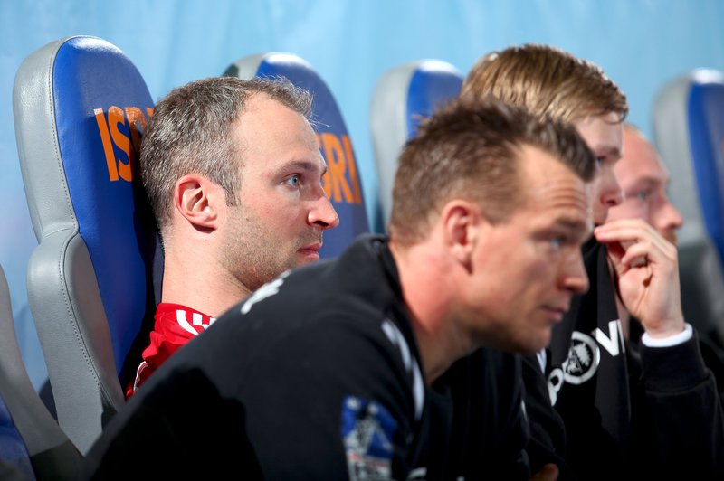 | Thierry Omeyer. | Rutenka am Boden. | Alfred Gislason. | Vor dem Spiel. | |||