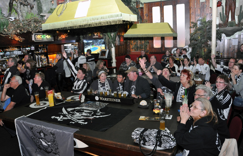 | THW-Fans beim Public-Viewing in der Gecko-Bar, Hamburg. | HSV-Trainer Martin Schwalb. | Jubel. | Daniel Kubes. | |||