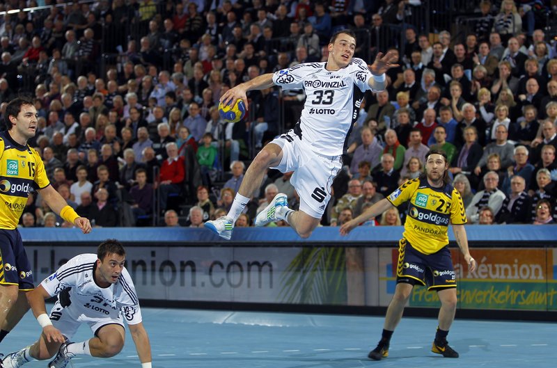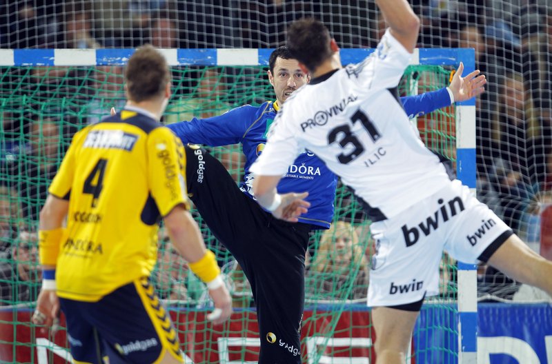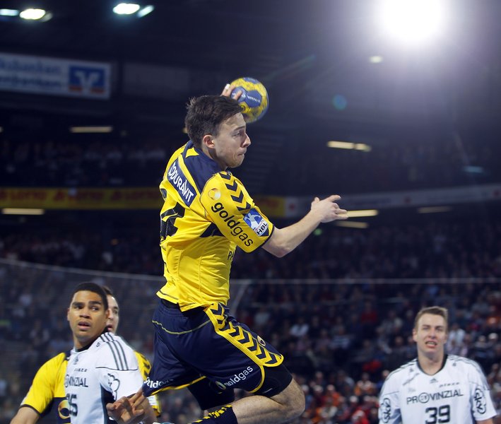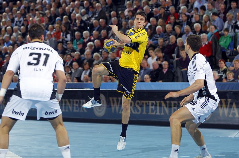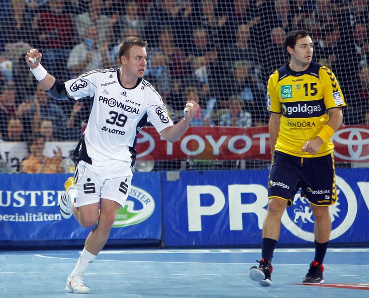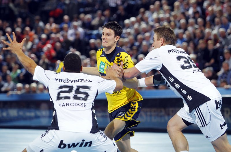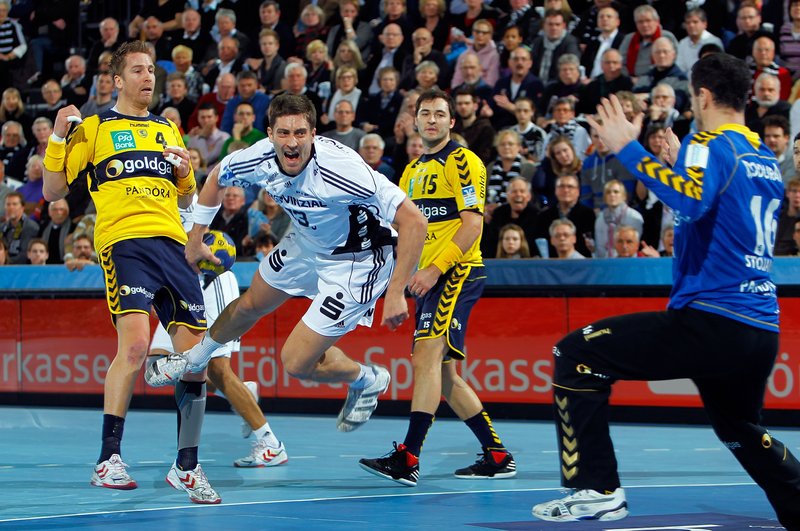 | Marcus Ahlm. | Momir Ilic gegen Goran Stojanovic. | Kieler Deckungsarbeit. | Karol Bielecki. | |||