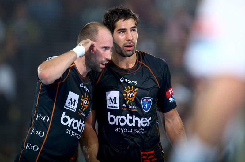 | Vor dem Spiel. | Nikola Karabatic, im Hintergrund Vid Kavticnik. | Filip Jicha. | Daniel Narcisse. | |||