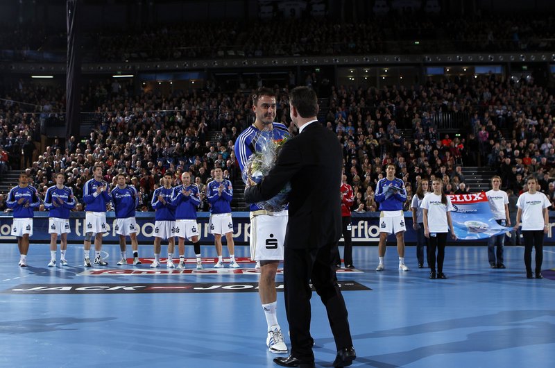 | Dominik Klein. | Christian Zeitz. | Vor dem Spiel. | Ehrung für EM-Silber 2012. | |||
